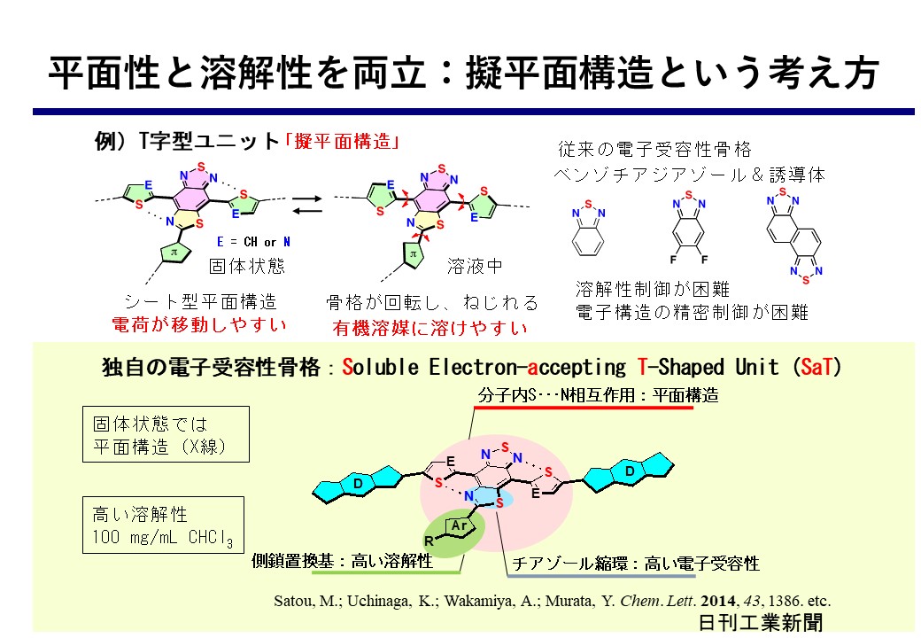 これに対する我々の研究アプローチは、求められる物性や機能からフィードバックして考案する「独自の分子設計」に基づいた物質創製である。